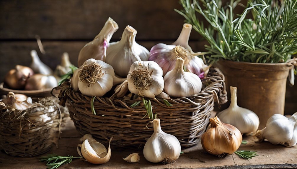 Aby skutecznie przechowywać czosnek, trzymaj całe główki w chłodnym, suchym miejscu w temperaturze 60-65°F, z dala od światła słonecznego. Dobrze wentylowane miejsce, takie jak spiżarnia, sprawdza się najlepiej. Dla obranych ząbków użyj szczelnego pojemnika w lodówce przez maksymalnie tydzień, lub zamroź je w torbach na dłuższe przechowywanie. Możesz także przygotować pastę czosnkową i przechowywać ją w lodówce, dodając na wierzch oliwę z oliwek dla dodatkowej świeżości. Zawsze sprawdzaj oznaki psucia się, takie jak miękkie plamy czy nieprzyjemny zapach. Możesz się dowiedzieć więcej o maksymalizowaniu trwałości czosnku, więc zostań z nami na dodatkowe wskazówki!
