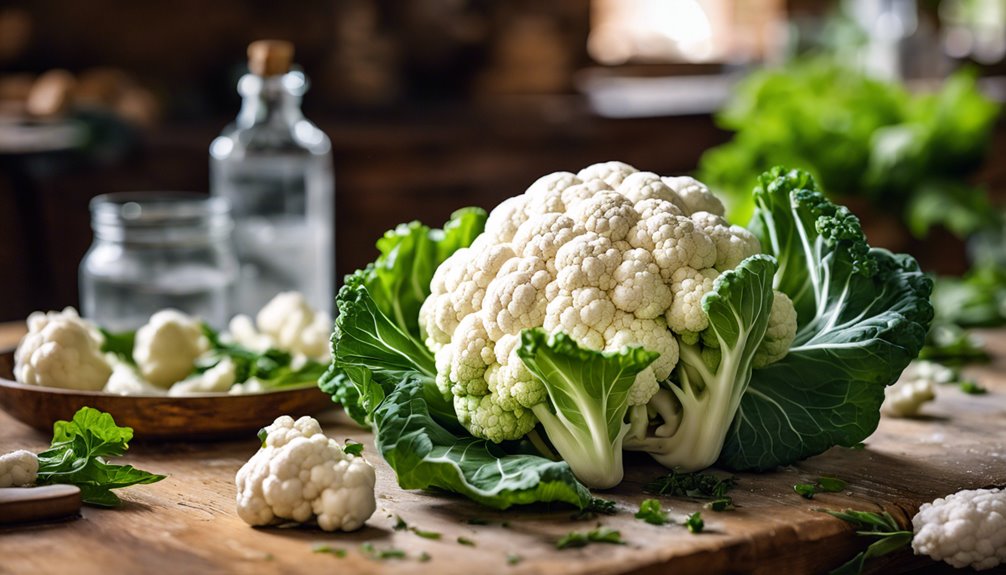 Aby przechować kalafior i utrzymać go świeżym, zacznij od wyboru jędrnych główek bez plam. Nie myj ich przed przechowywaniem; zamiast tego, owiń kalafior luźno w wilgotny ręcznik papierowy, aby pomóc w utrzymaniu wilgotności. Umieść go w szufladzie na warzywa w lodówce, najlepiej w temperaturze między 32°F a 36°F. To zapobiega psuciu się i utrzymuje jakość. Jeśli pokroiłeś kalafior na różyczki, przechowuj je w oddychających pojemnikach i regularnie sprawdzaj, czy nie ma oznak wilgoci lub przebarwień. Jest jeszcze wiele do odkrycia na temat zachowania smaku i świeżości Twojego kalafiora.