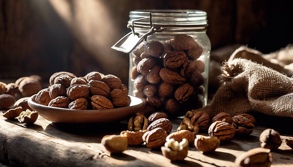 Aby prawidłowo przechowywać orzechy włoskie, trzymaj je w chłodnym, suchym miejscu, utrzymując temperaturę między 32°F a 40°F (0°C a 4°C). Używaj szczelnych pojemników, takich jak słoiki szklane lub woreczki próżniowe, aby chronić je przed wilgocią i światłem. Jeśli planujesz długoterminowe przechowywanie, rozważ ich zamrożenie, co może przedłużyć ich świeżość nawet do dwóch lat. Zawsze sprawdzaj oznaki zepsucia, takie jak zjełczały zapach lub gorzki smak. Stosując te wskazówki, będziesz mógł cieszyć się orzechami włoskimi w najlepszej formie. Istnieje więcej szczegółów i najlepszych praktyk, które mogą być dla Ciebie przydatne, aby zapewnić ich jakość.