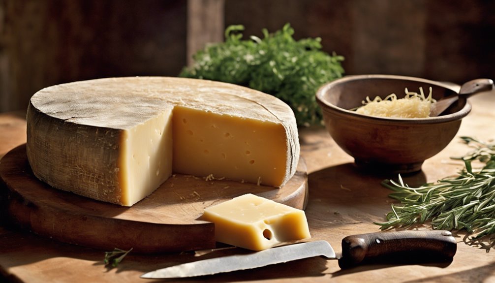 Aby prawidłowo przechowywać ser Parmesan, trzymaj go w lodówce w temperaturze między 35°F a 45°F. Większe kawałki owiń w papier pergaminowy lub woskowy, podczas gdy mniejsze porcje dobrze przechowują się w szczelnych pojemnikach. Utrzymuj poziom wilgotności na poziomie 60-70%, aby zapobiec pleśni i wysychaniu. Jeśli potrzebujesz długoterminowego przechowywania, możesz zamrozić starty ser Parmesan w szczelnych pojemnikach lub torebkach z zamkiem. Regularnie sprawdzaj, czy nie ma oznak zepsucia, odcinając wszelką pleśń czystym nożem. Stosowanie tych wskazówek pomoże Ci cieszyć się świeżym i aromatycznym serem Parmesan, ale jest jeszcze więcej do odkrycia na temat ulepszania technik przechowywania sera.