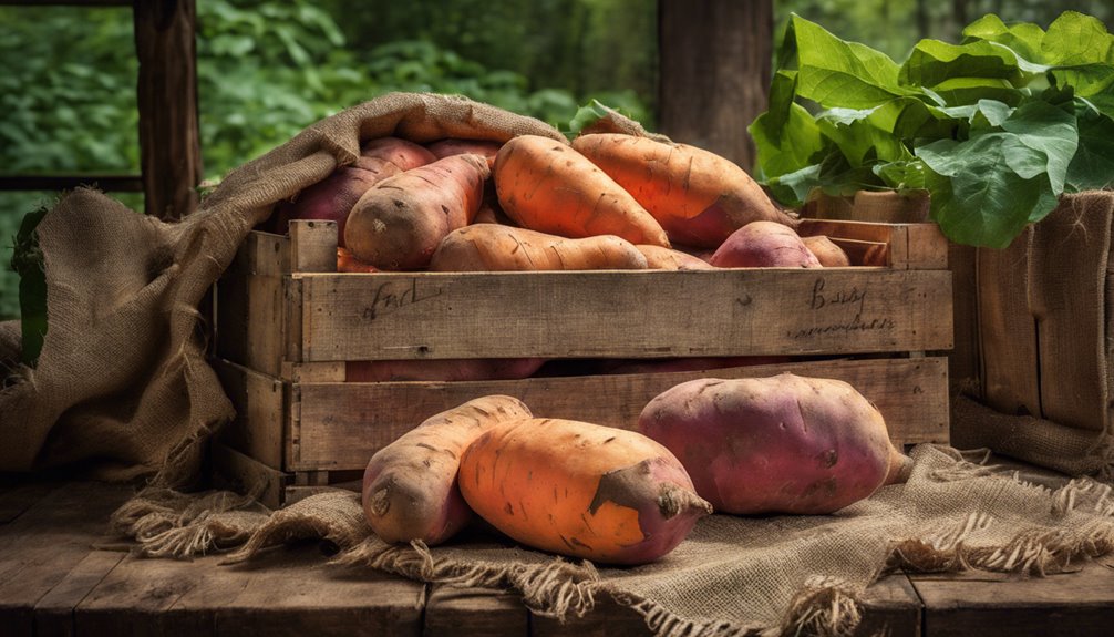 Aby przechowywać bataty, znajdź chłodne, ciemne i dobrze wentylowane miejsce, takie jak spiżarnia lub piwnica. Celuj w temperatury między 13°C a 16°C i unikaj chłodzenia, aby zachować ich smak. Używaj przepuszczających powietrze pojemników, takich jak kosze wiklinowe, i utrzymuj poziom wilgotności na poziomie około 60-70%, aby zapobiec wysychaniu. Regularnie sprawdzaj swoje bataty pod kątem objawów psucia się, takich jak miękkość lub ciemne plamy. Trzymaj je w całości, aż będziesz gotowy do gotowania. Stosując te wskazówki, możesz cieszyć się ich pysznym smakiem, zachowując świeżość. Jest jeszcze więcej do odkrycia na temat zachowania ich jakości!