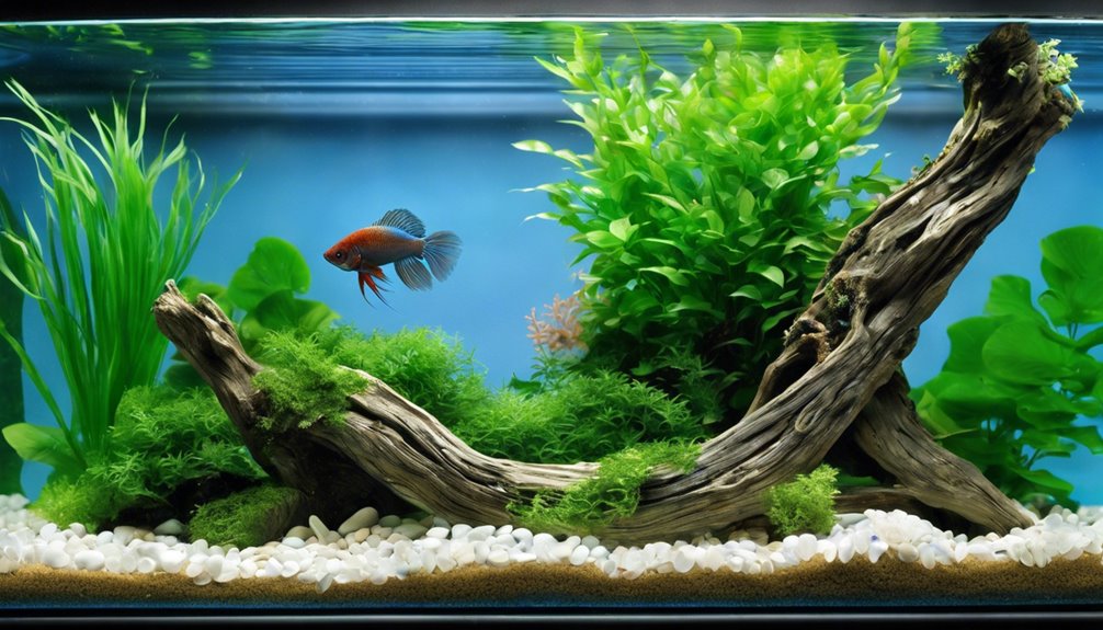 Następnie ważne jest, aby utrzymać stabilną temperaturę wody w przedziale 25-28°C, używając regulowanego grzałki. Ten zakres jest kluczowy dla dobrostanu twojego bojownika. Dodaj rośliny żywe, takie jak Cryptocoryne, Anubias i Java Moss, aby poprawić jakość wody i zapewnić miejsca do odpoczynku w pobliżu powierzchni. Dodatkowo, dodaj miejsca do ukrycia, używając drewna lub muszli kokosowych, aby dać twojemu bojownikowi poczucie bezpieczeństwa.